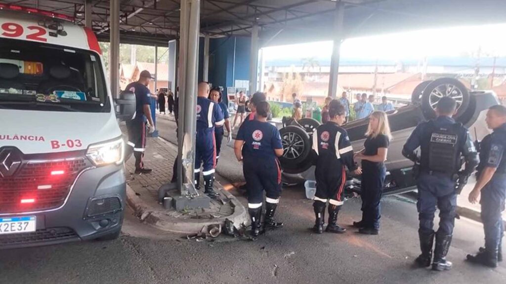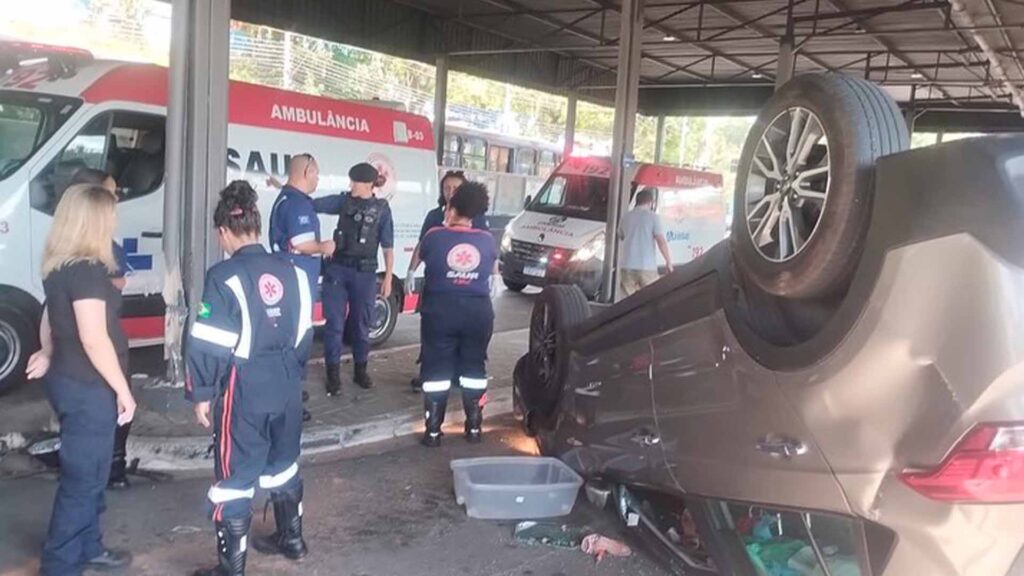 Na tarde desta sexta-feira (28), um Hyundai Creta capotou dentro do Terminal Rodoviário de Caieiras, causando apreensão entre as pessoas que estavam no local. Segundo informações publicadas pela Prefeitura de Caieiras, o condutor do veículo perdeu o controle da direção e colidiu contra uma das pilastras do terminal. Felizmente, não houve feridos.