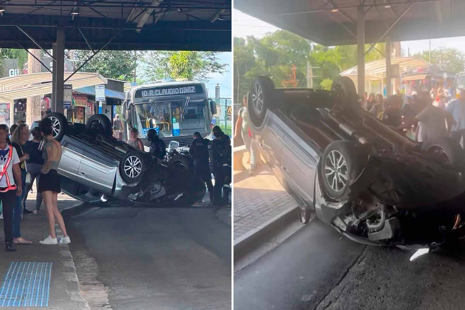 Na tarde desta sexta-feira (28), um Hyundai Creta capotou dentro do Terminal Rodoviário de Caieiras, causando apreensão entre as pessoas que estavam no local. Segundo informações publicadas pela Prefeitura de Caieiras, o condutor do veículo perdeu o controle da direção e colidiu contra uma das pilastras do terminal. Felizmente, não houve feridos.