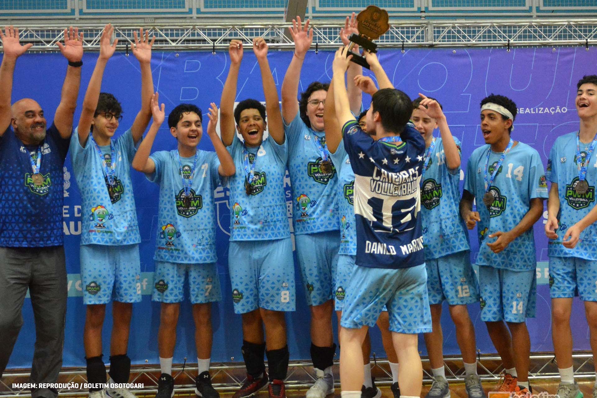 O time de vôlei sub-15 de Caieiras PWM garantiu o terceiro lugar no Circuito Esportivo de Voleibol 2024, promovido pela Prefeitura de São Paulo, no último sábado (30/11), no Complexo Desportivo Baby Barioni. A vitória, comandada pelo treinador Washington Melo, veio após um duelo contra a Associação Esportiva Cultural 100ZALA, decidido no 5º set, o tie-break.