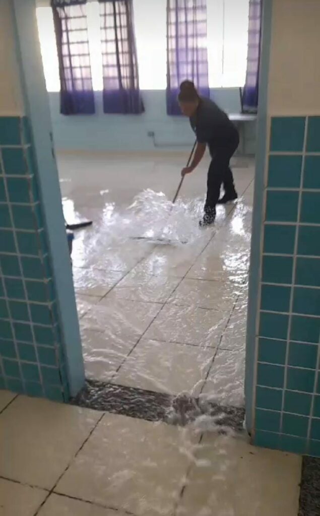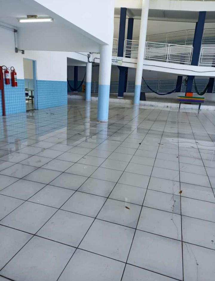 Imagens recebidas revelam que salas de aula e pátios ficaram inundados devido à infiltração de água pelo teto e janelas.
