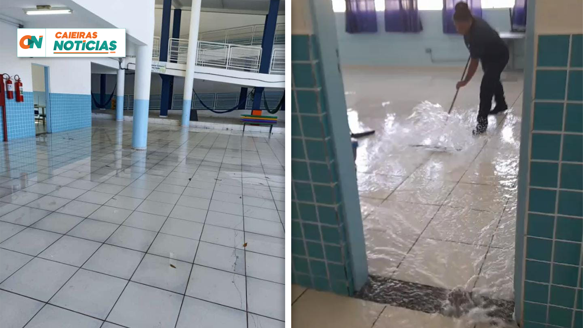 Imagens recebidas revelam que salas de aula e pátios ficaram inundados devido à infiltração de água pelo teto e janelas.