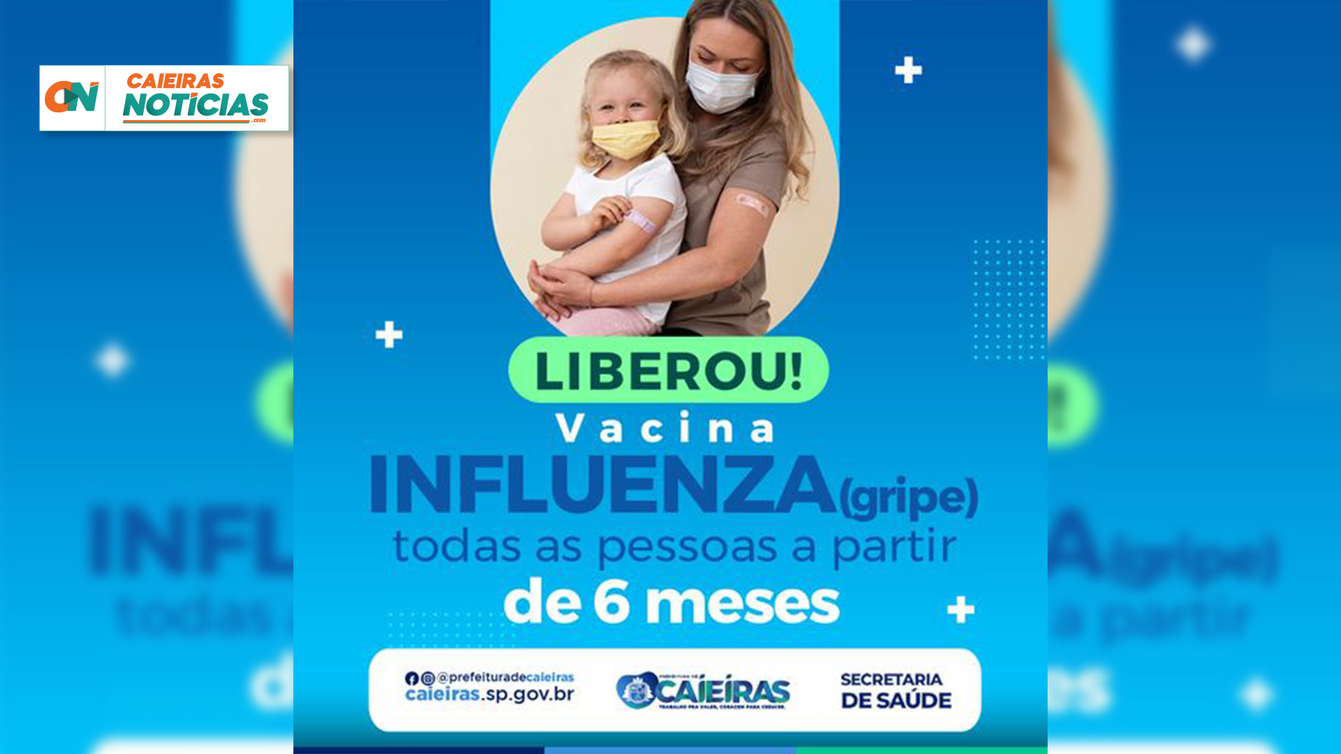 A partir de hoje (16), a vacina contra a influenza (gripe) passa a ser aplicada para todos os grupos de pessoas com 6 meses de idade ou mais. Compareça à UBS mais próxima de você e se proteja.
