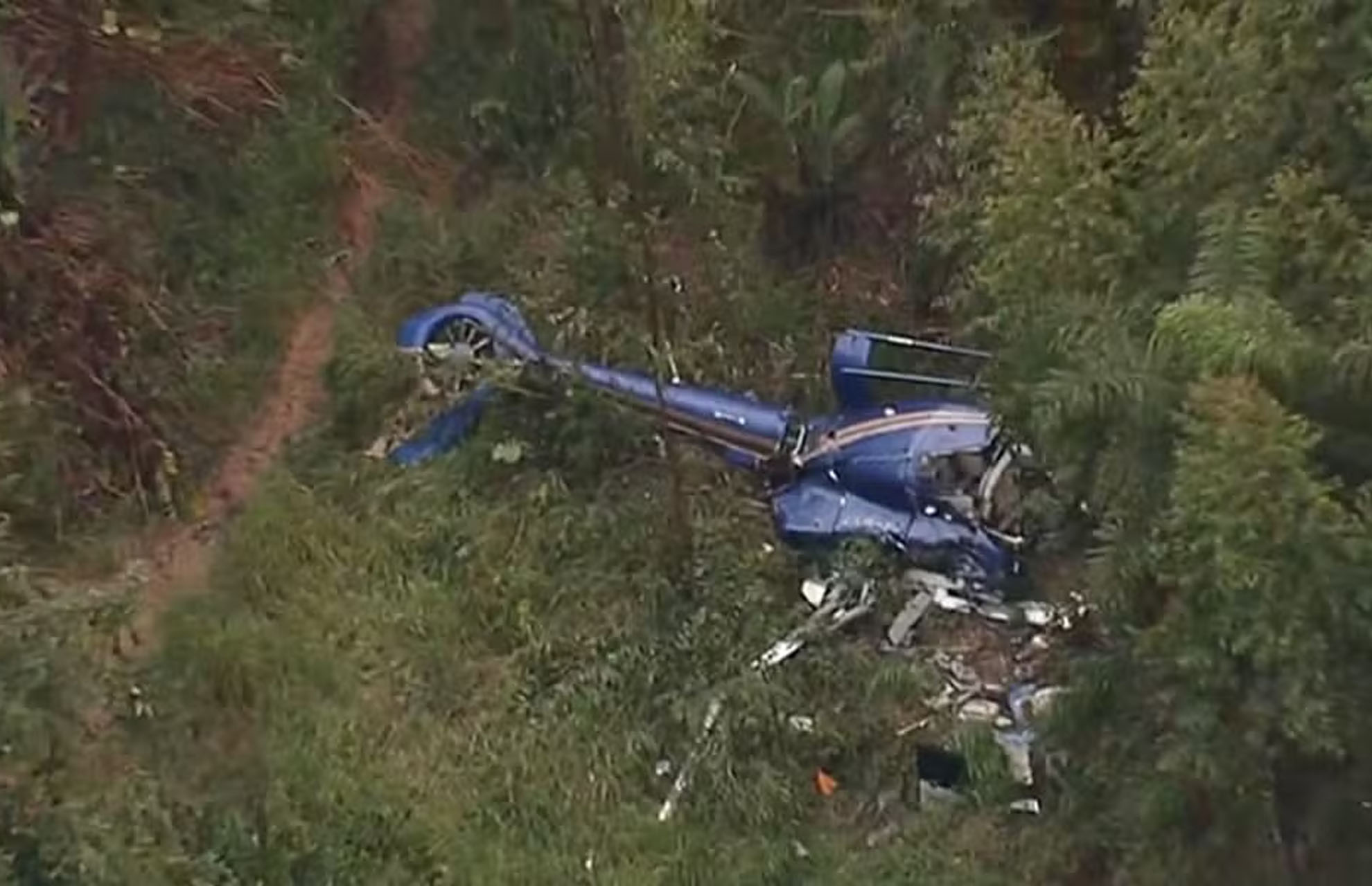 - Destroços do helicóptero foram encontrados em região de mata fechada.