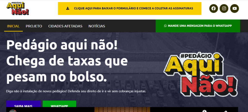 Uma mobilização popular liderada por prefeitos de municípios do Circuito das Águas e da Rota Mogiana tenta coletar 180 mil assinaturas para apresentar um projeto de lei popular contra a implantação de novos pedágios em rodovias paulistas. A iniciativa, batizada de “Pedágio Aqui Não!”, busca impedir cobranças lesivas aos munícipes e minimizar os impactos econômicos da concessão do Lote Rodoviário do Circuito das Águas e Rota Mogiana.
