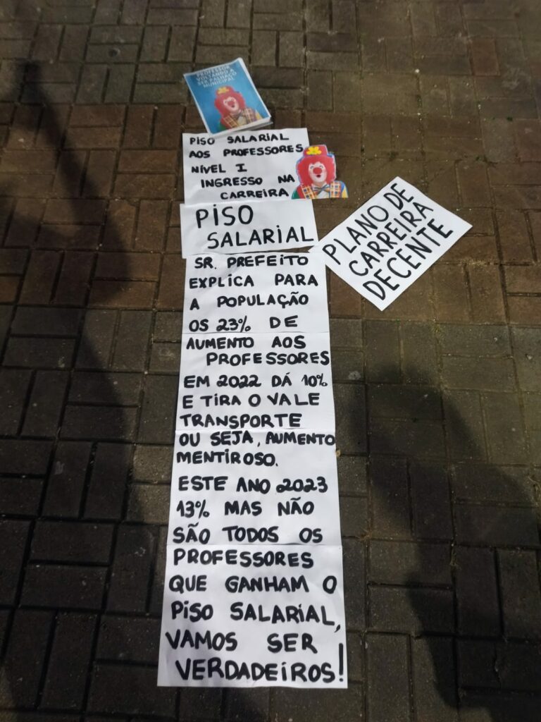 Nesta segunda-feira (6), um grupo de professores da rede municipal de Caieiras realizou uma manifestação na Praça Pro Polo.