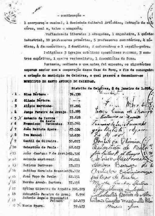 No documento, o município passaria a denominar-se MUNICÍPIO DE SANTO ANTONIO DE CAIEIRAS.